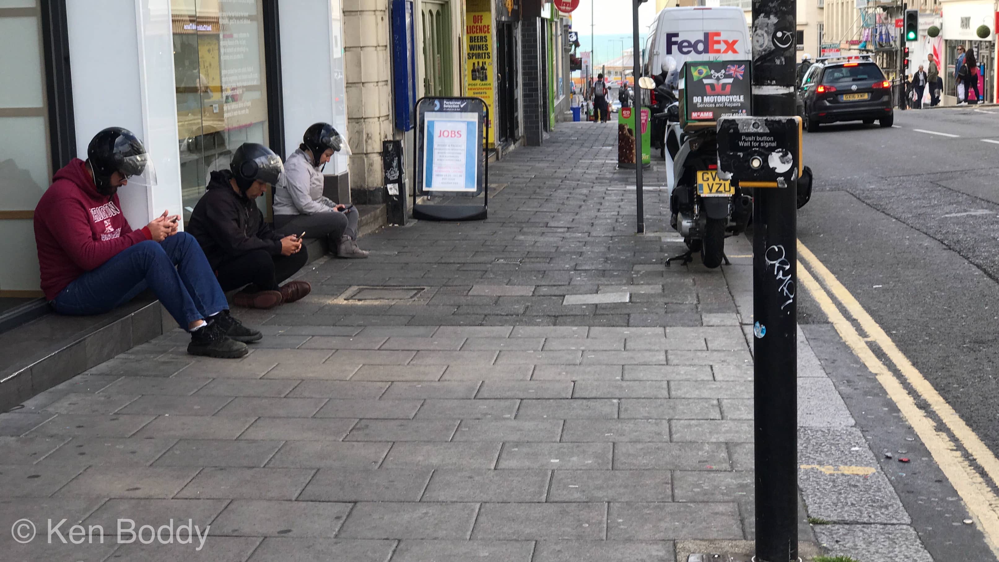 Last week I photographed a full crew of waiting delivery riders in Brighton. Then it was around midday; these chaps are the breakfast crew.