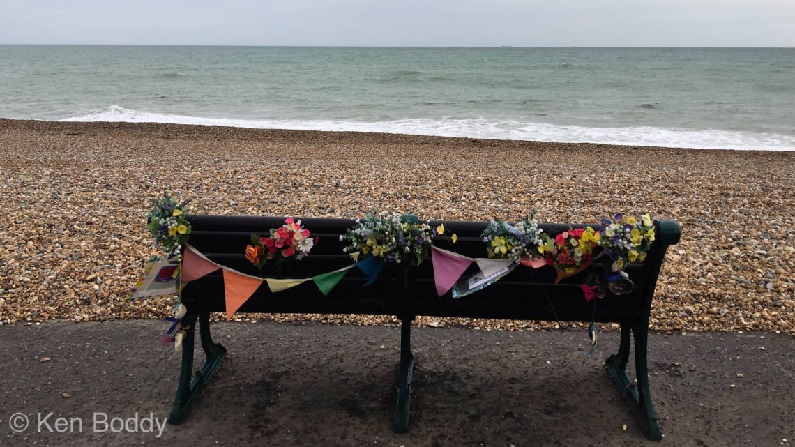 On a seafront walk I came across this memorial tribute. The bench in front had been decorated as well … nuff said.