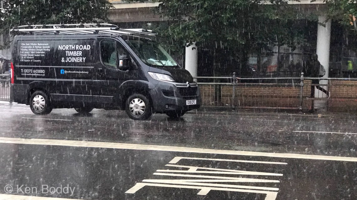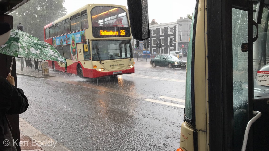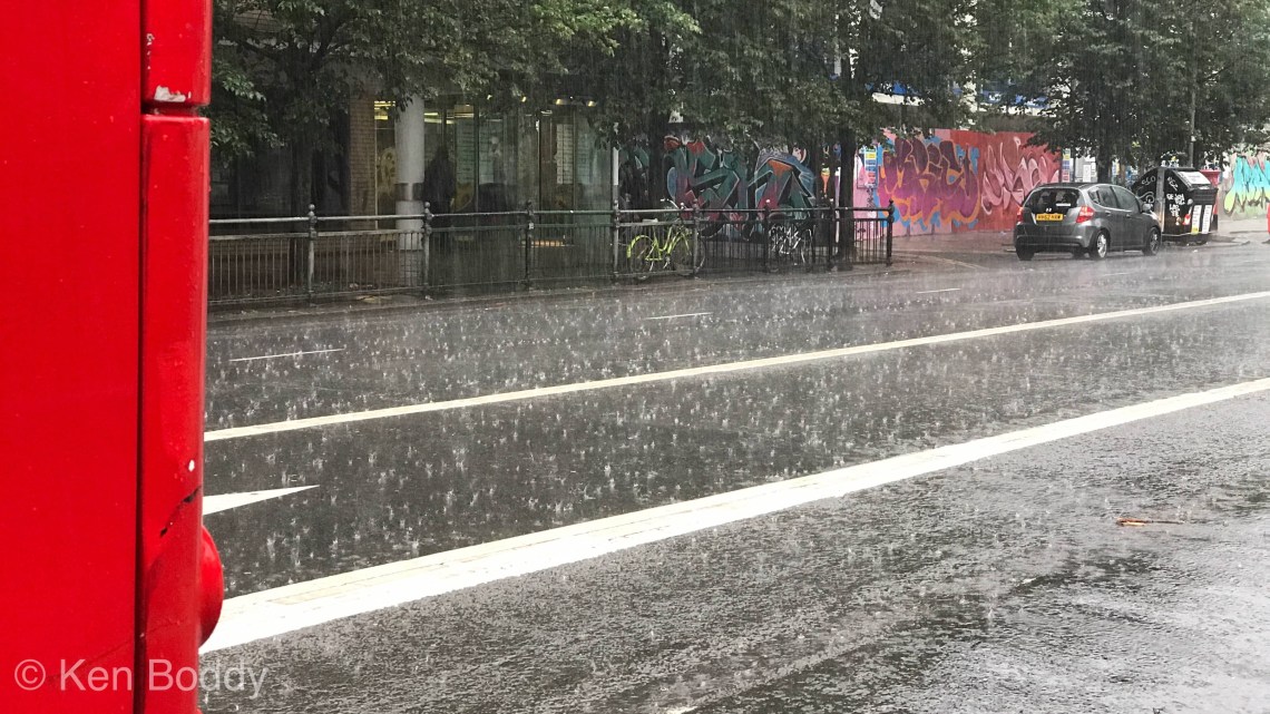 As we approached the North Road bus stop the heavens opened and it took just moments for the full effect of the storm to show through.