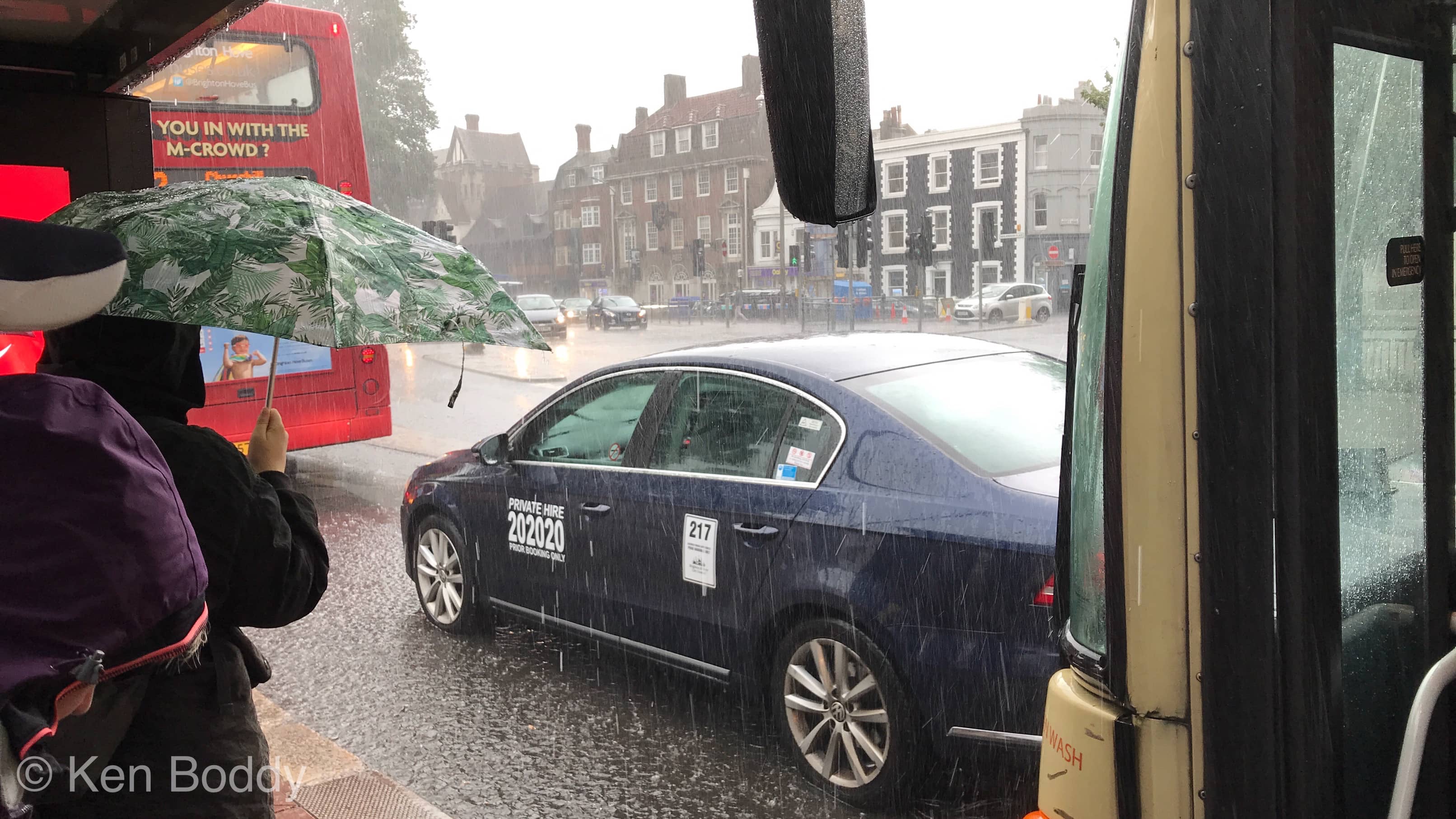 As we approached the North Road bus stop the heavens opened and it took just moments for the full effect of the storm to show through.