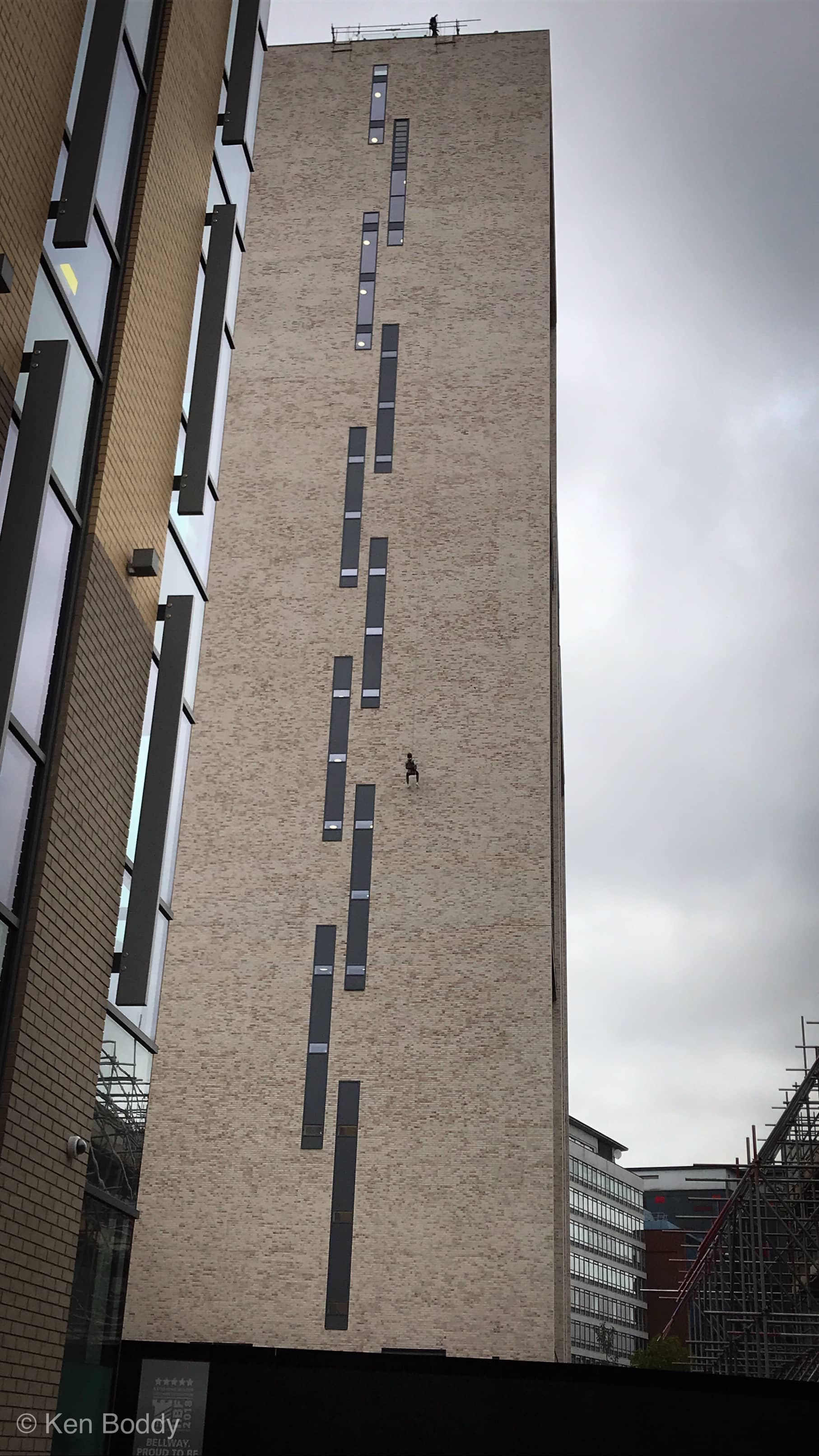 On returning from lunch I spied a dangling thing halfway down the side of this building. I had only just walked past in the opposite direction and noticed nothing.