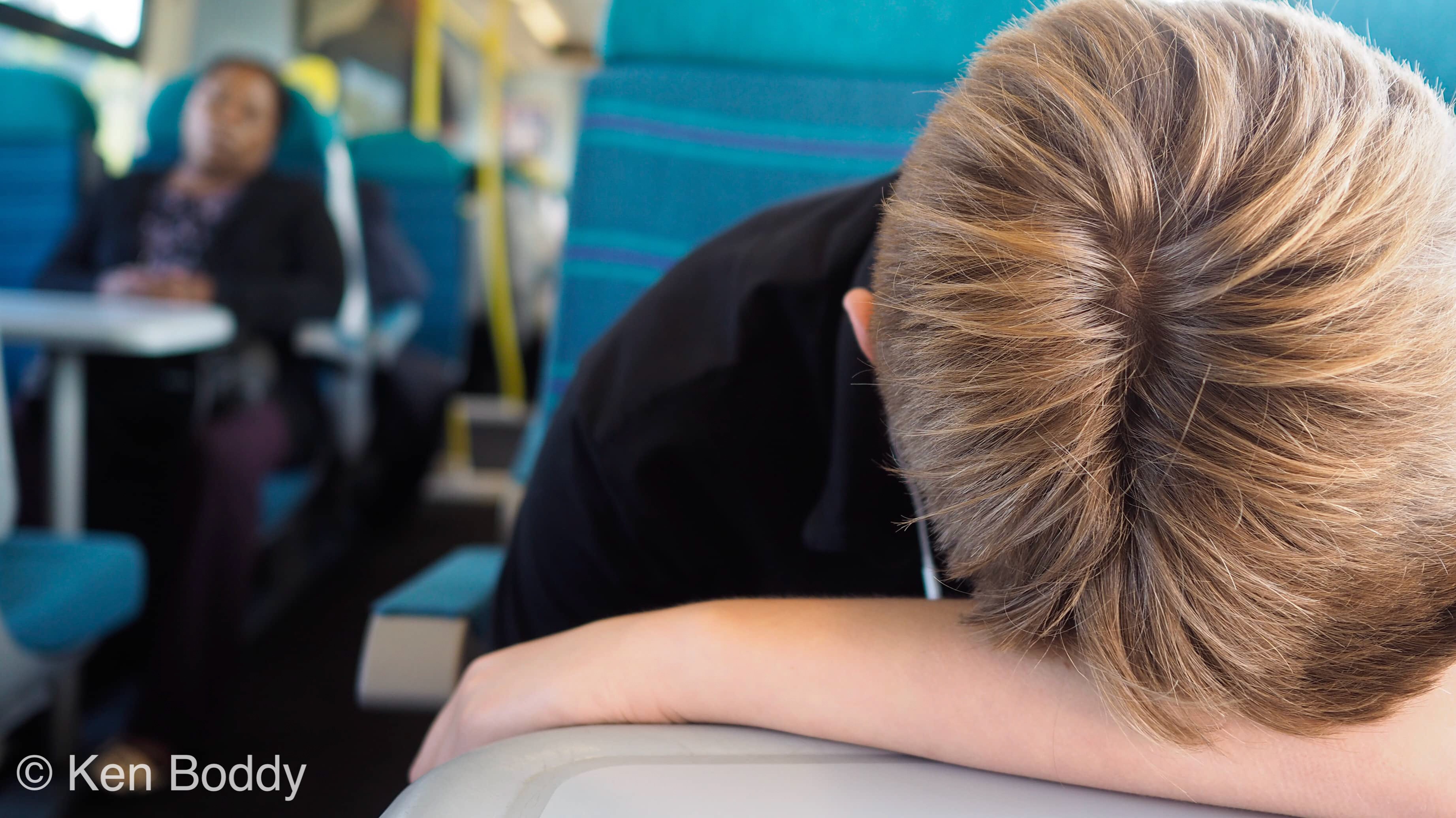 I sat down and this chaps’ head was already in this position! I could makeup a story about how he had been partying hard and was on the way home, or he was tiered beyond belief and was not really asleep just resting his eyes. But no … no idea.