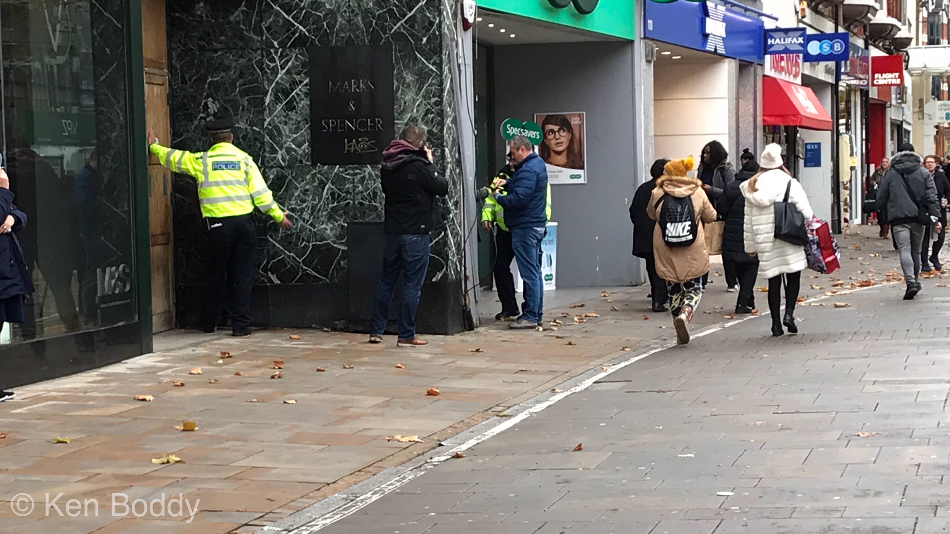 I thought something was happening when I noticed two high-vis stationary policemen dividing the High Street with an imposing presence.