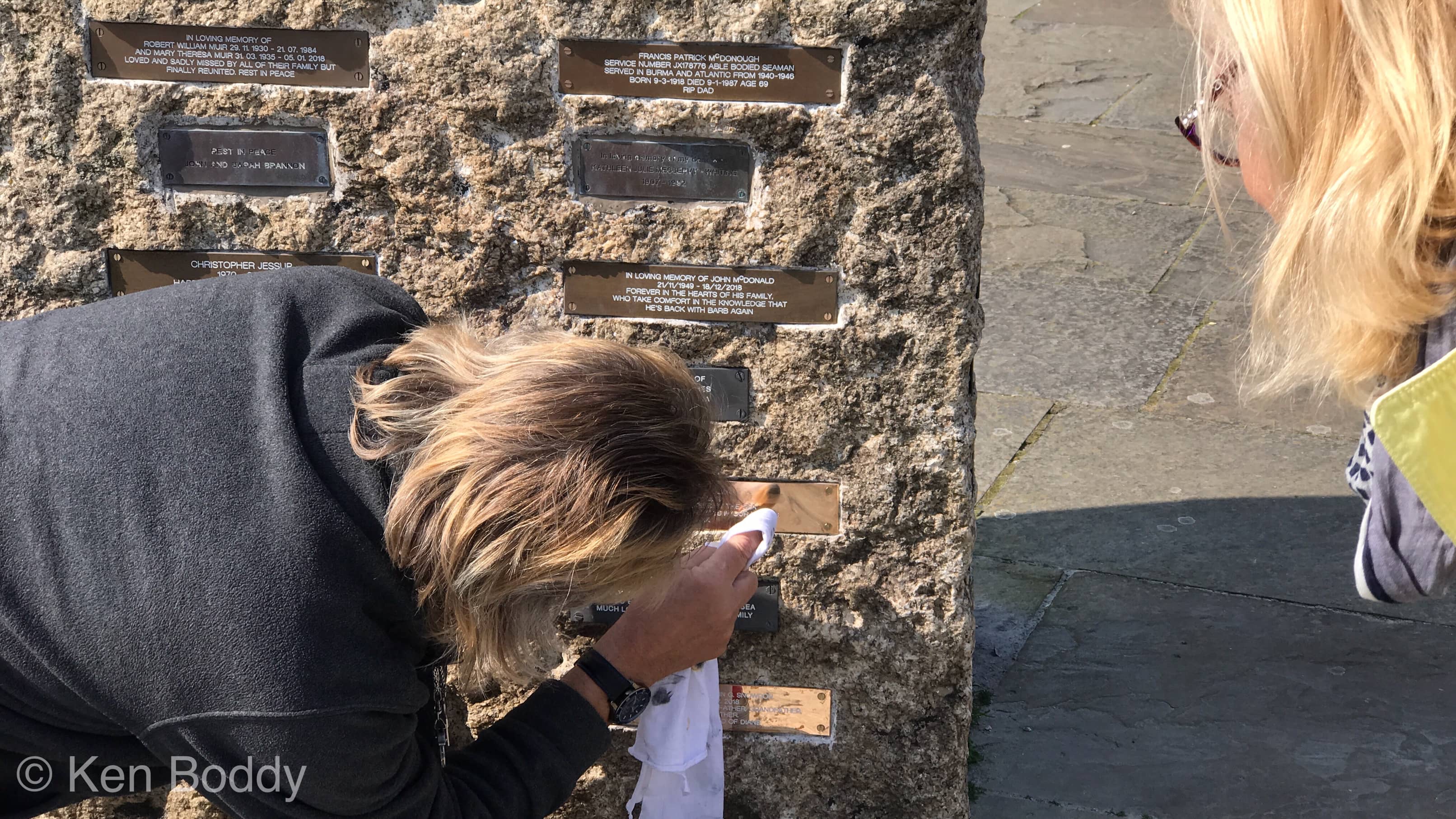 The brass plate had only just been secured to the plinth and needed a clean.