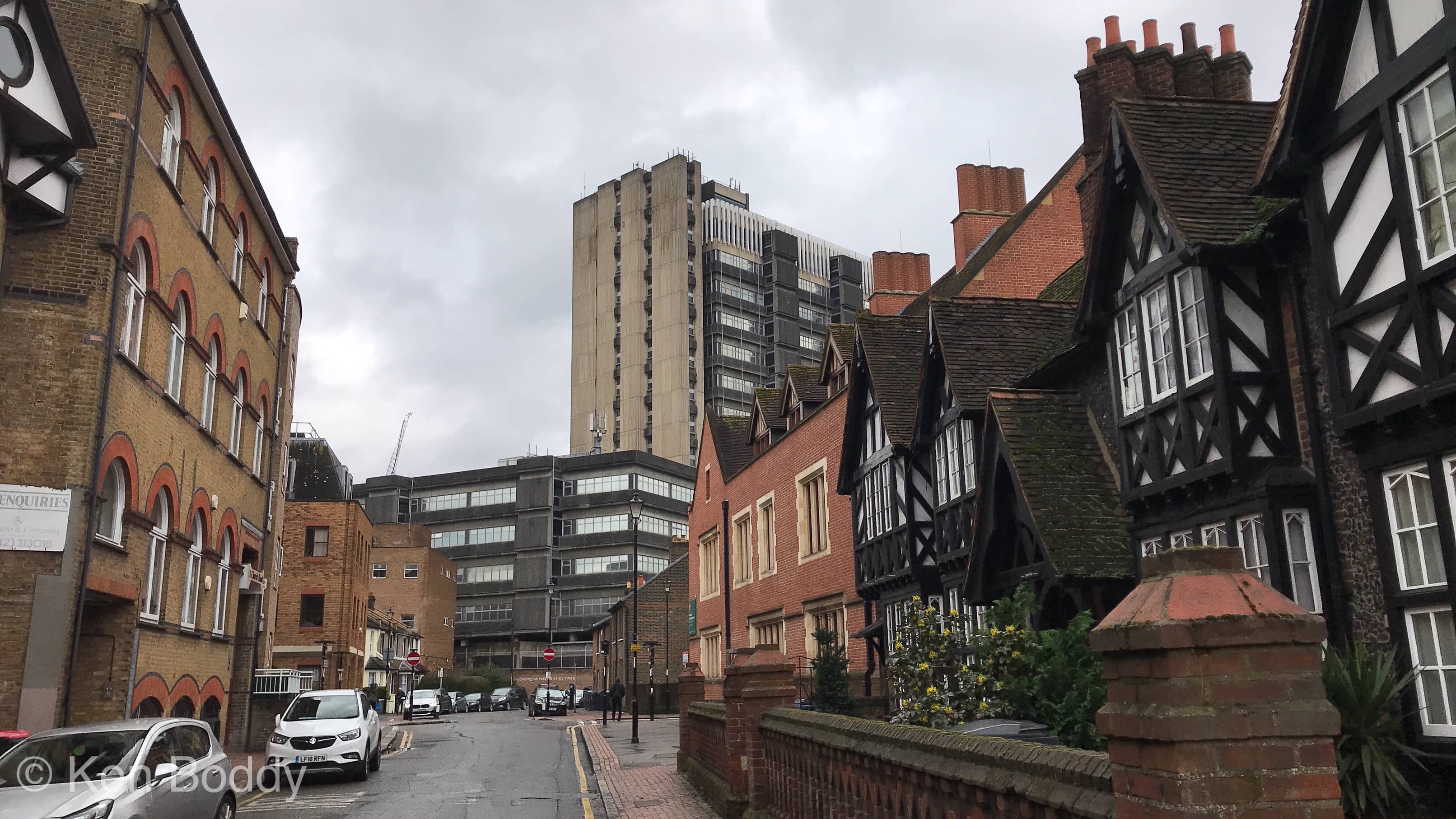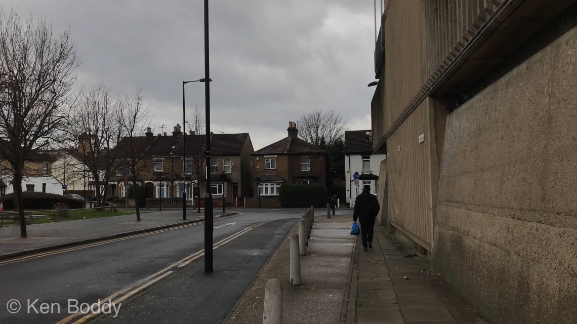 Existing housing dwarfed by this concrete structure. The elevation at the time must have seemed appropriate, but in my opinion could/should have be more considerate to the scale and style of its neighbours.