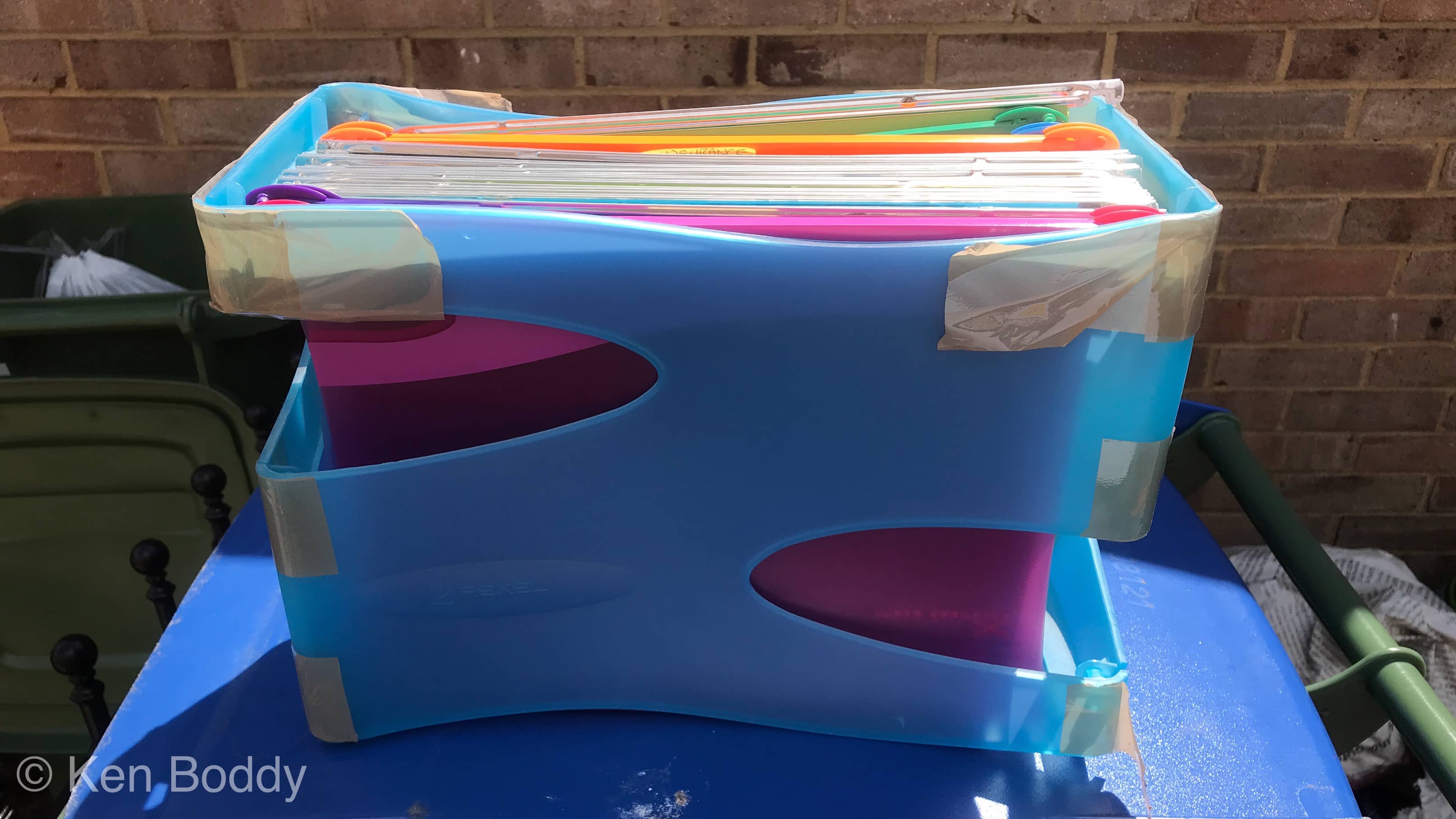 I have had this piece of plastic a very long time, just sitting there, which should add an insult to me for not throwing it out sooner; but today I won and got around to it. I sneaked up on it and booed it when it thought I had forgotten it was still there.