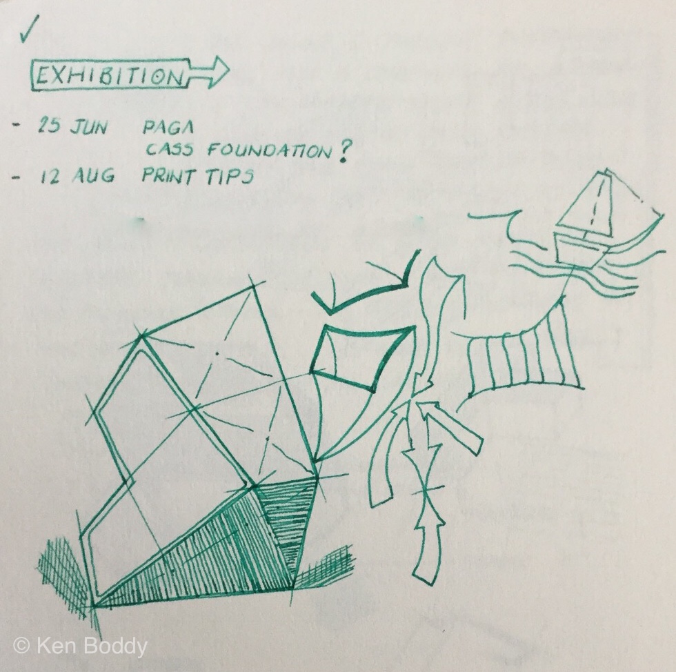 I walked at beach level along Brighton Sea Front and found an upside down house as a crazy house, looking similar to my doodle.