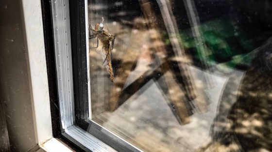 On a Sunday morning a dragonfly unexpectedly landed on our bedroom window. Surprised- been here for 30 or so years…
