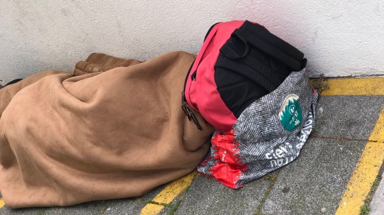 Irony equals the larger than life poster on the right. Brighton has a homeless problem!